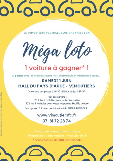 Le Vimoutiers FC organise ses Mégas Lotos le samedi 1er juin 2019 à la Hall du Pays d'Auge à Vimoutiers (61)